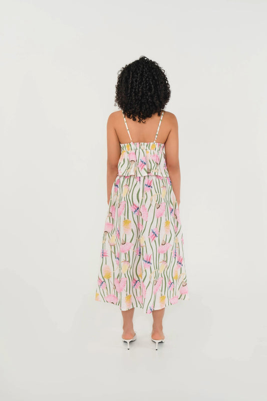 The Australian Halter Dress in Aussie Desert Flowers Linen
