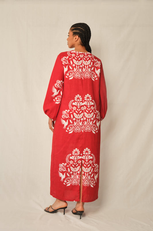 Square Dance Poplin Midi Dress – Two-Line Macramé