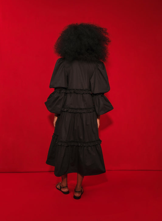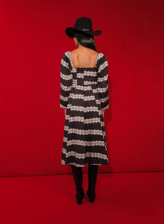 Square Dance Poplin Midi Dress – Two-Line Macramé