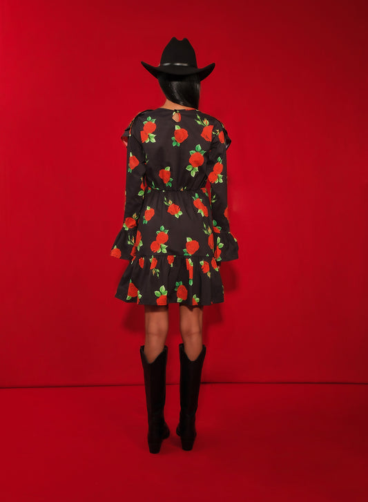 Ruffle Collar Poplin Mini Dress – Maxi Roses Print