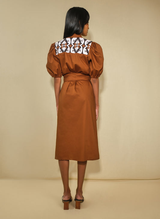 Pompón Shirt Dress – Puff-Sleeve Poplin Midi with Paisley Yoke