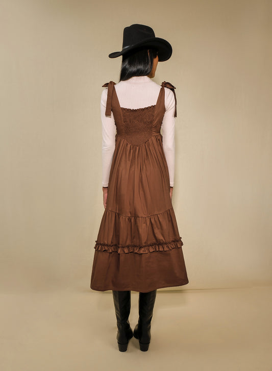 Quibdó Fit-and-Flare Poplin Midi Dress – Tiered Ruffle, Corset Bodice