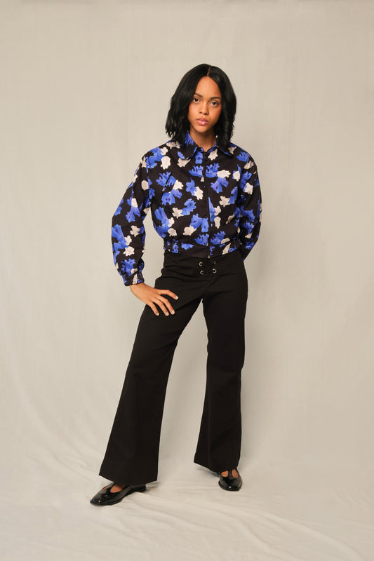 Puff-Sleeve Peplum Top – Fragment in Jacaranda Print