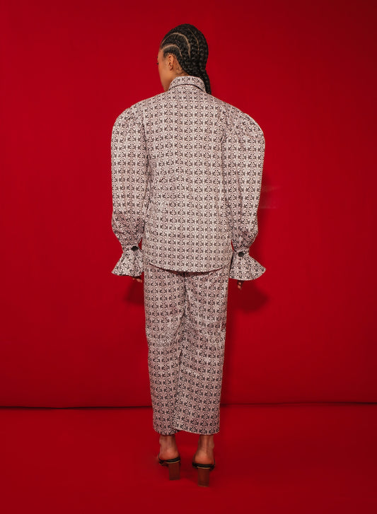 Printed Puff-Sleeve Poplin Shirt – Sotomayor (Macramé Print)